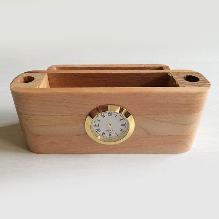 Wooden pen holder with clock