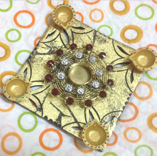 Black and Gold Plate along with Flower shapped studded tealite holder.