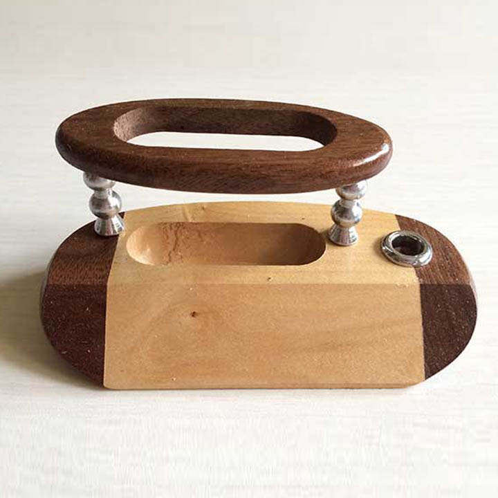 Logo engraved wooden mobile stand